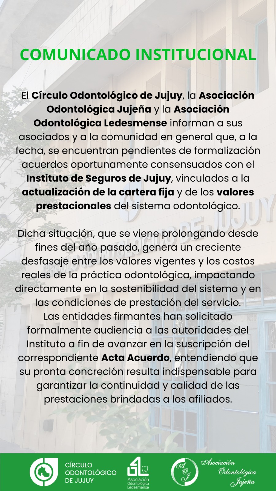 El Círculo Odontológico de Jujuy, asociación civil sin fines de lucro constituida el 18 de Mayo del año 1938, en la Ciudad de San Salvador de Jujuy, con plena capacidad para adquirir derechos y contraer obligaciones, y con per-sonería jurídica acordada por Decreto N º 3998-G- del 15 de Mayo de 1945, del Poder Ejecutivo de la Provincia de Jujuy