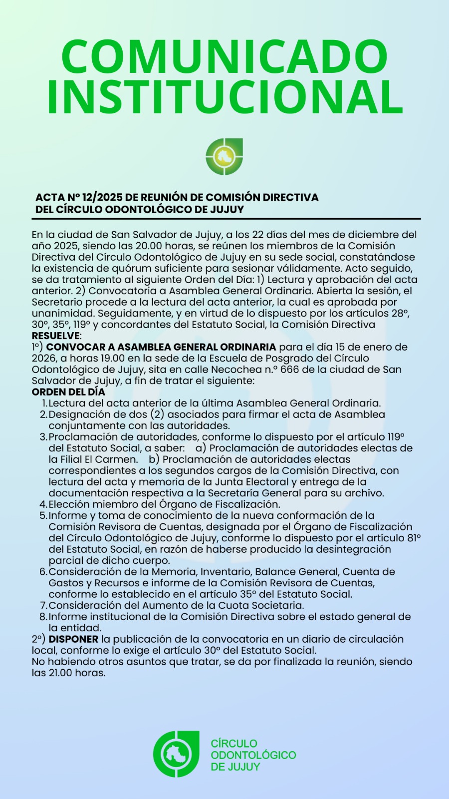 La Comisión Directiva aprobó la creación una Credencial Digital para los socios del Círculo Odontológico, la cual, pasa a estructurarse y desarrollarse para su próxima implementación en las siguientes semanas.